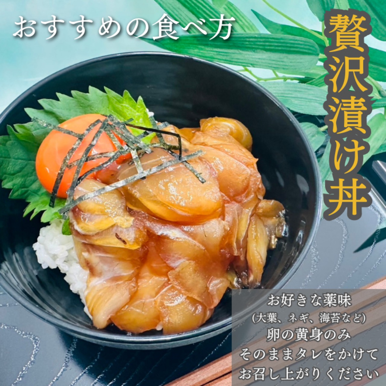 天然の鯛を贅沢に使用し、特製の出汁醤油にじっくり漬け込んだ逸品。